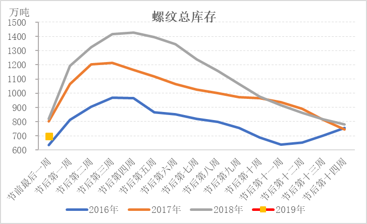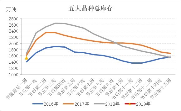 庫存低于去年同期,市場(chǎng)有望出現(xiàn)開門紅行情。根據(jù)Mysteel庫存統(tǒng)計(jì)數(shù)據(jù),2019年春節(jié)前最后一周五大品種庫存雖高于2016年,但低于2017、2018年,尤其是螺紋鋼,總庫存低于2018年同期122萬噸。在產(chǎn)量高于去年同期的情況下,需求是好于去年同期的。市場(chǎng)對(duì)節(jié)后需求依舊抱有較大期待。