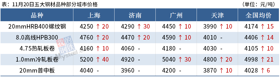 ◎ 中天鋼鐵11月下旬出廠價螺紋鋼漲130、線材盤螺漲130,帶鋼漲100。
