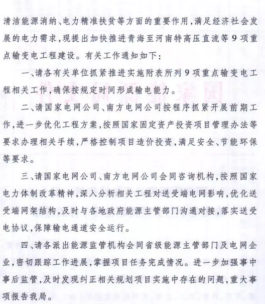 On September 7th, it was learned that the National Energy Administration issued the "Notice on Accelerating the Planning and Construction of a Batch of Key Projects for Power Transmission and Transformation". Guonengfa Electric Power [2018] No. 70, "Notice" pointed out that to supplement the infrastructure sector The strength of the board will play an important role in optimizing the investment structure, clean energy consumption, and precise power poverty alleviation, and accelerate the promotion of 9 items from Qinghai to Henan UHV DC, Baihetan to Jiangsu, Baihetan to Zhejiang UHV DC. The construction of key transmission and transformation projects will total 57 million kilowatts of transmission capacity (see the annex for the project).